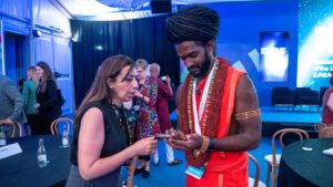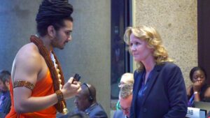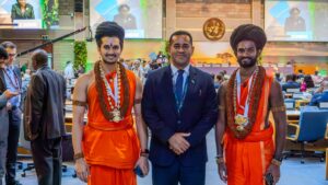 Nairobi, Kenya – Delegates of the USK Foundation engaged in an enriching cultural exchange with Honourable Romina Pourmokhtari, Minister for Climate and the Environment of Sweden, during the 6th Session of the United Nations Environment Assembly (UNEA6). The session was